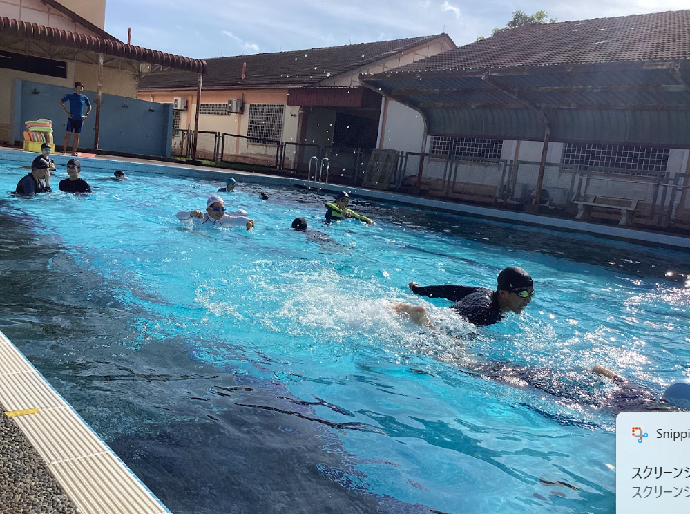 マレーシアの環境のもと、子どもたちは週に2回の授業に真剣に取り組み技術の習得に励みました。その結果、この短期間でクロールと平泳ぎの基礎をしっかりと身につけ、泳力は目覚ましく向上しました。
