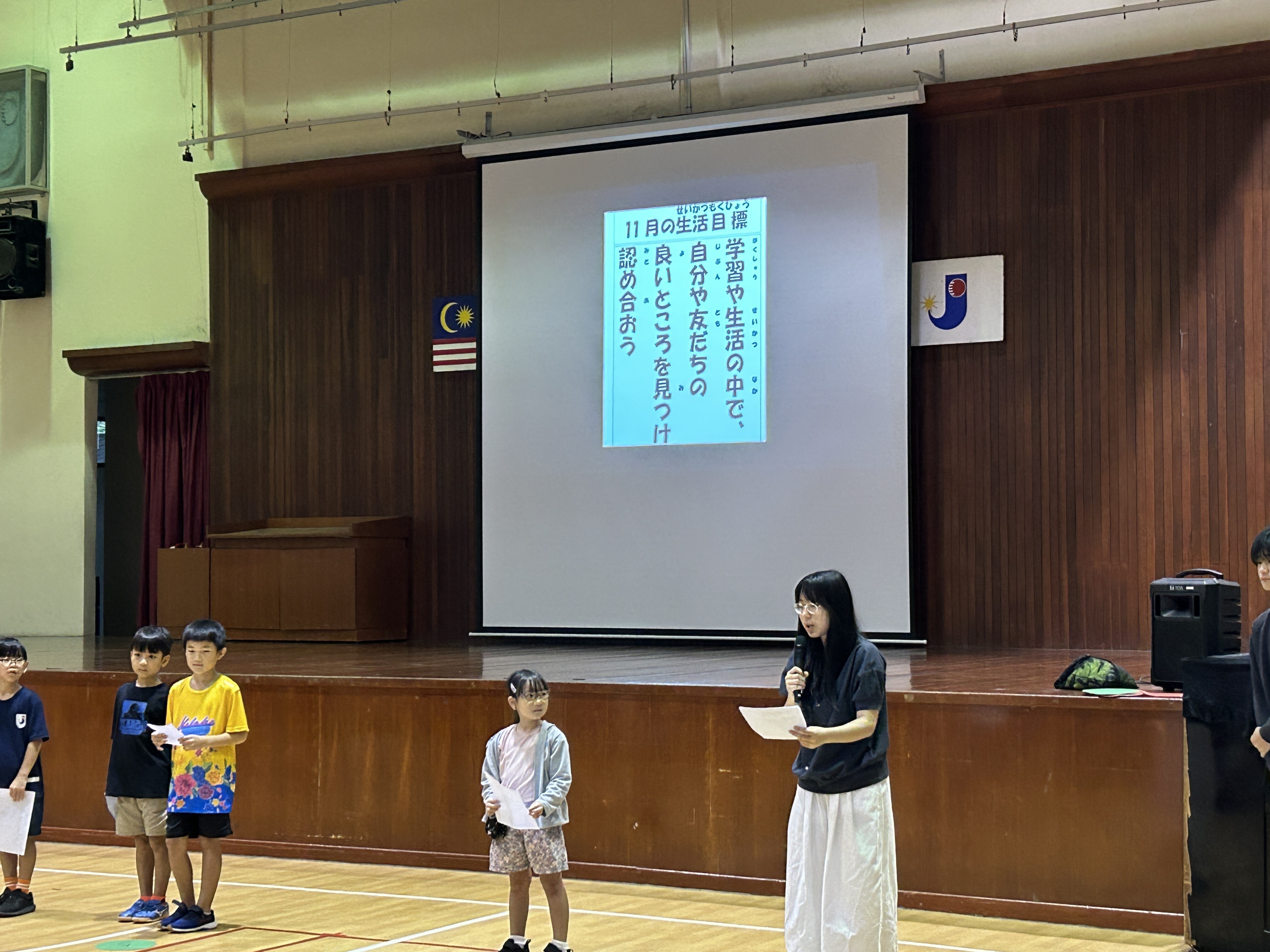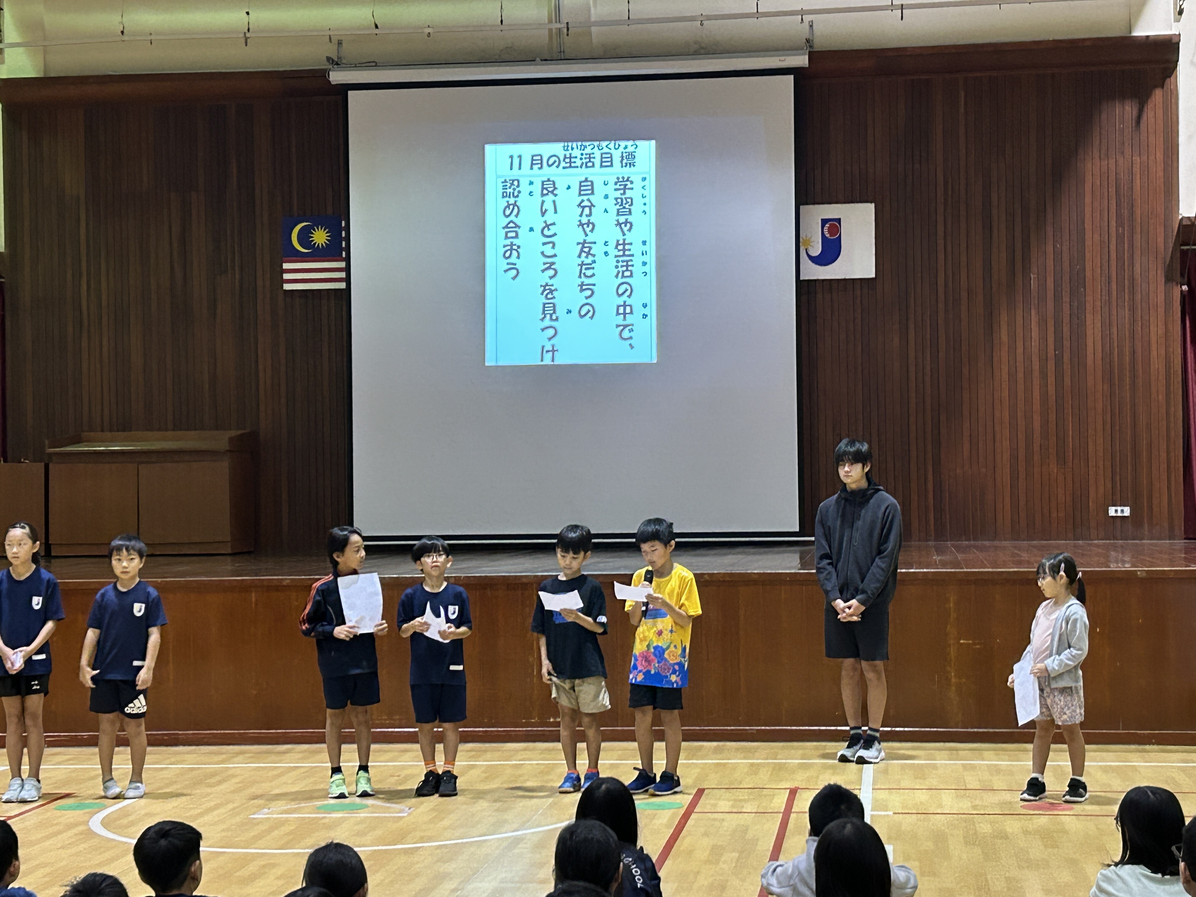 本日の児童生徒集会では、各学年の代表が今月の目標「相手の良いところを見つけよう」について学級での取り組みを振り返り、温かな雰囲気が広がりました。